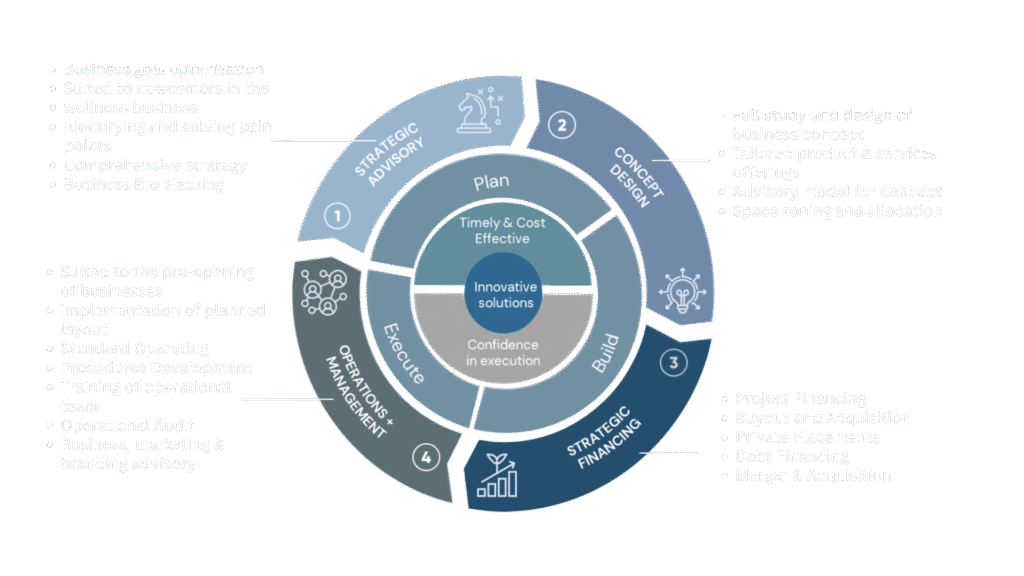 Our mission is to empower leaders, innovators, and institutions to build sustainable wellness-driven enterprises through strategic, ethical, and evidence-based advisory. We translate science into strategy, wellness into business intelligence, and ideas into models that endure. Through tailored guidance and hands-on collaboration, we help clients navigate complexity, unlock value, and embed preventive health and purpose-driven living at the core of their ventures.